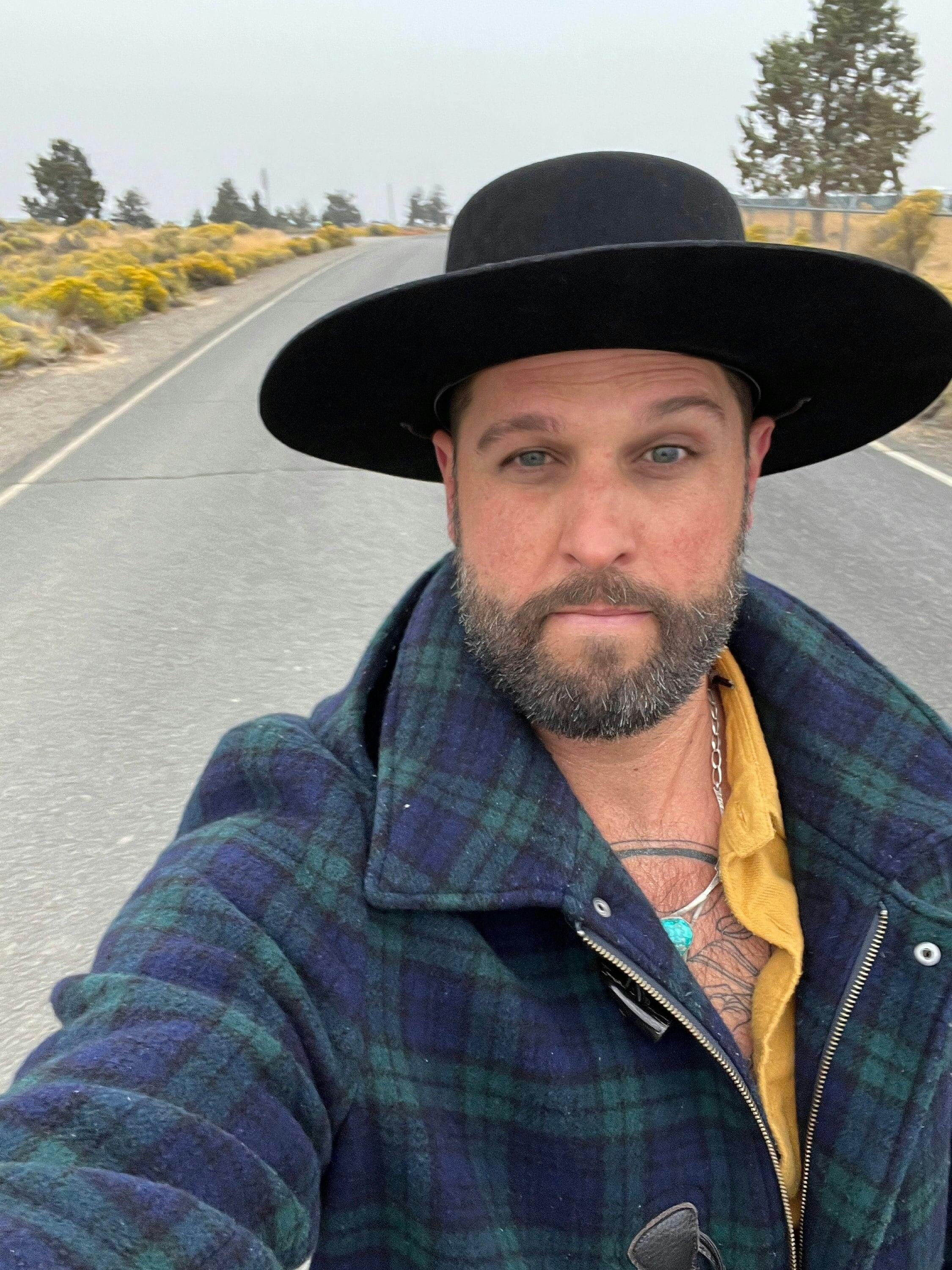 Ein stilvoller schwarzer Cowboyhut mit breiter Krempe