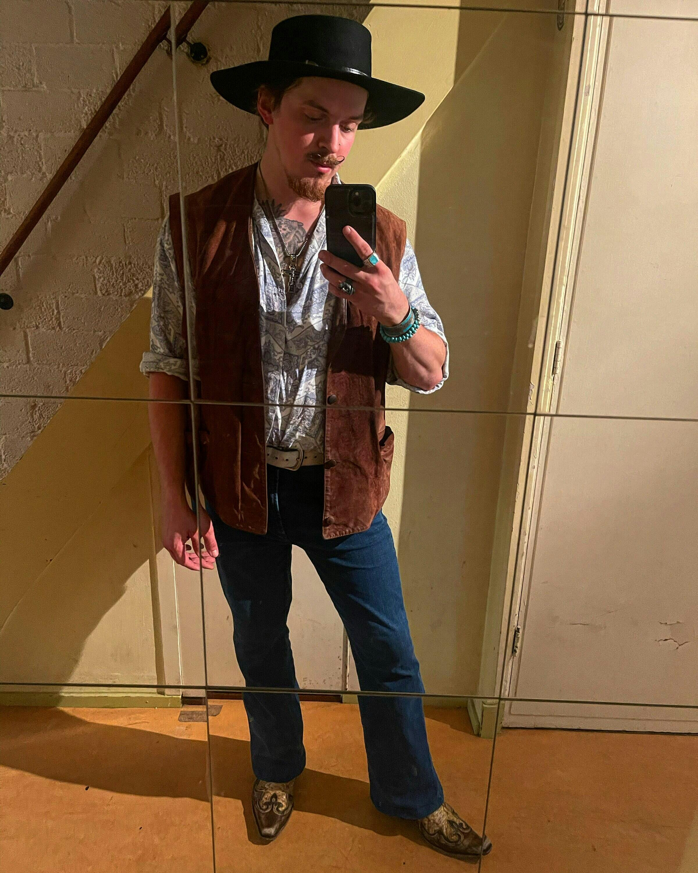 Lernen Sie den Gambler kennen, einen schwarzen Cowboyhut mit breiter Krempe, gefertigt für alle, die Wert auf einen mutigen, auffälligen Stil legen. Mit einer klassischen Western-Krone vereint dieser Hut traditionelles Cowboy-Design mit moderner Raffinesse. Handgefertigt aus luxuriösem Haarfilz, verspricht der Gambler sowohl Langlebigkeit als auch Komfort. Dank unzähliger Personalisierungsmöglichkeiten ist jeder Hut ein einzigartiger Ausdruck Ihres persönlichen Stils und spiegelt Authentizität sowie Individualität wider.