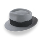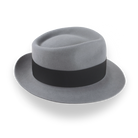 Rick's Reserve is a handcrafted Casablanca fedora with a film noir aesthetic, featuring a teardrop crown and snap brim. Made from premium rabbit fur felt, this fedora blends classic style with modern comfort for a timeless, elegant look.