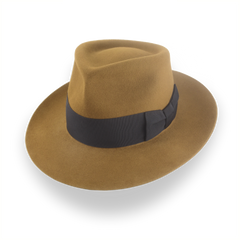 Experience the essence of classic cinema with The Falcon, an iconic Bogart fedora hat custom handcrafted to perfection. Made from premium rabbit fur felt, this hat features a teardrop crown and a smooth finish, blending elegance with durability. The 5 1/4" crown height and 2 3/4" raw-edge snap brim create a distinguished silhouette that exudes timeless charm. Custom-made to fit your exact head size, The Falcon ensures unparalleled comfort and style. Choose your color combination to reflect your personal flair, and enjoy the luxury of a hat that merges vintage appeal with modern craftsmanship.