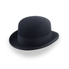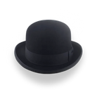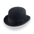 The Ascot is a customizable black felt derby hat, crafted from premium rabbit fur felt with a round crown and ribbon-bound brim. Tailored for a perfect fit, this hat combines classic style with modern sophistication for the discerning gentleman. - Product Details