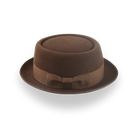 Il Soul, un cappello porkpie da uomo marrone, è realizzato a mano in feltro di pelliccia di coniglio premium con una corona telescopica di 3 1/2". Fatto su misura per una vestibilità perfetta, questo cappello combina stile classico con sofisticazione moderna. - Dettagli prodotto